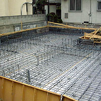 残念なことに地盤があまり良くなかったので、地盤改良工事をおこない、その後基礎工事となった。木造住宅の場合には標準的にベタ基礎形式にしている。